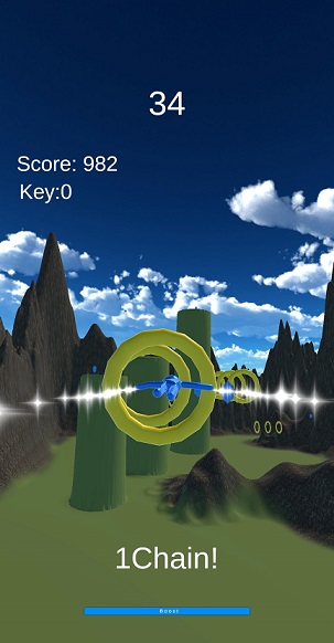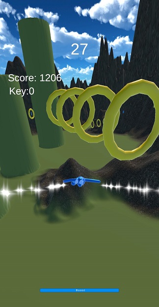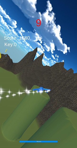 2、按指定的路线飞行,收集宝箱和道具,同时避免障碍物。