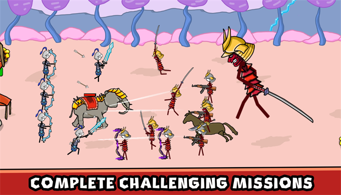 火柴人战争传奇王国是一款十分好玩的火柴人策略战争类游戏,在火柴人战争传奇王国中,你将会面对各种类型的敌人,使用不同的武器装备来击败他们,改变每个士兵的出装策略就能增加对敌人的攻势,喜欢的小伙伴们可以下载试试看!