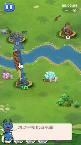 1、滑动手指夺取水晶,然后控制蚂蚁大军布置工事,准备战斗。