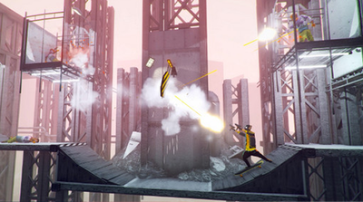 游戏基础的武器系统十分丰富,从前期就获取的手枪双持、冲锋枪双持到中后期才能拿到的霰弹枪和狙击枪等特殊武器,每种武器都不是只在数据上进行加强,近距离使用霰弹枪可以在杀敌的同时造成肢体破坏,玩家可以利用被破坏的肢体进行一些有趣的玩法,而狙击枪在远距离的精准爆头则更让人肾上腺素飙升。开发者为了强化这种动作上的爽快感,还在游戏中加入了大量用来“炫技”的道具,这些道具分散在场景各处,篮球、平底锅、滑板不一而足,得力于开发者的脑洞大开,玩家可以在游戏中尝试用各种匪夷所思的方式杀敌,例如“把平底锅一脚踢上天通过射击平底锅产生跳弹杀敌、踩着大桶玩杂技御桶杀敌、脚踢敌人肉块杀敌”等多种方式,当然,想要娴熟的使用各种开发者有心设置的道具,并不那么容易。