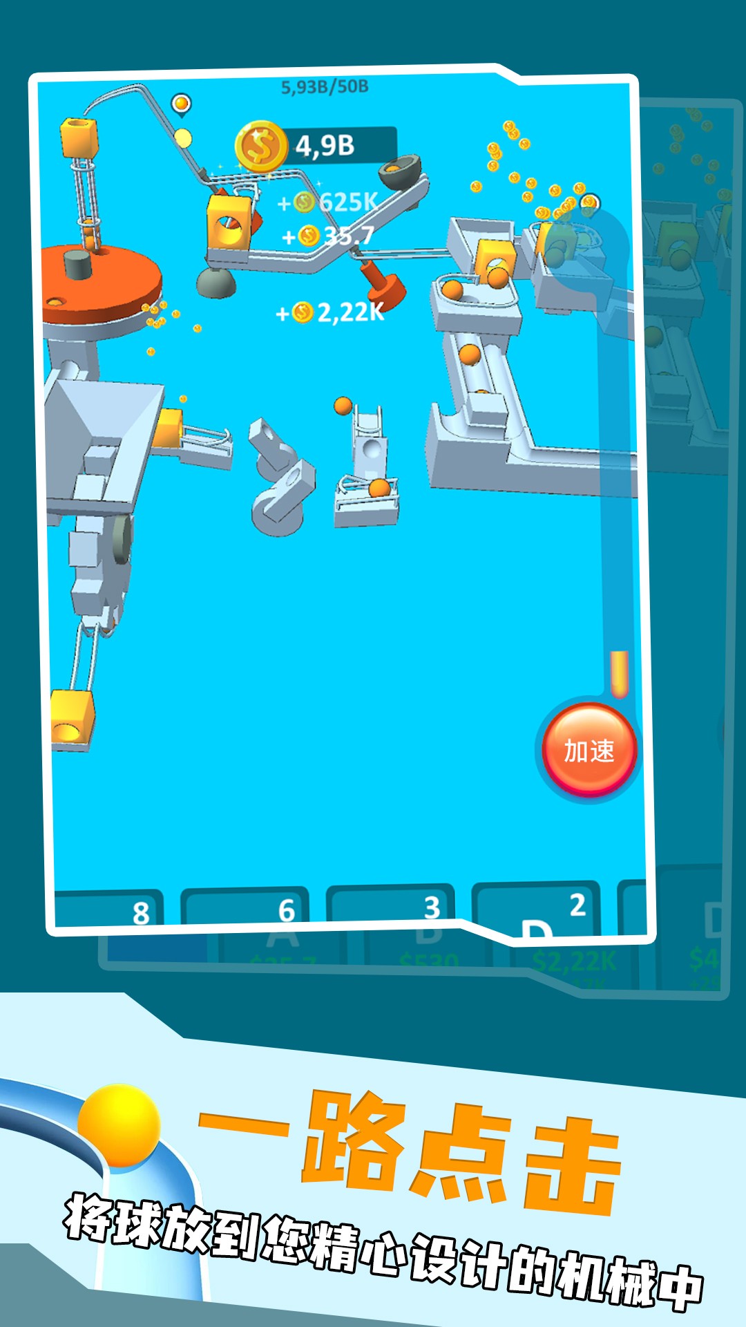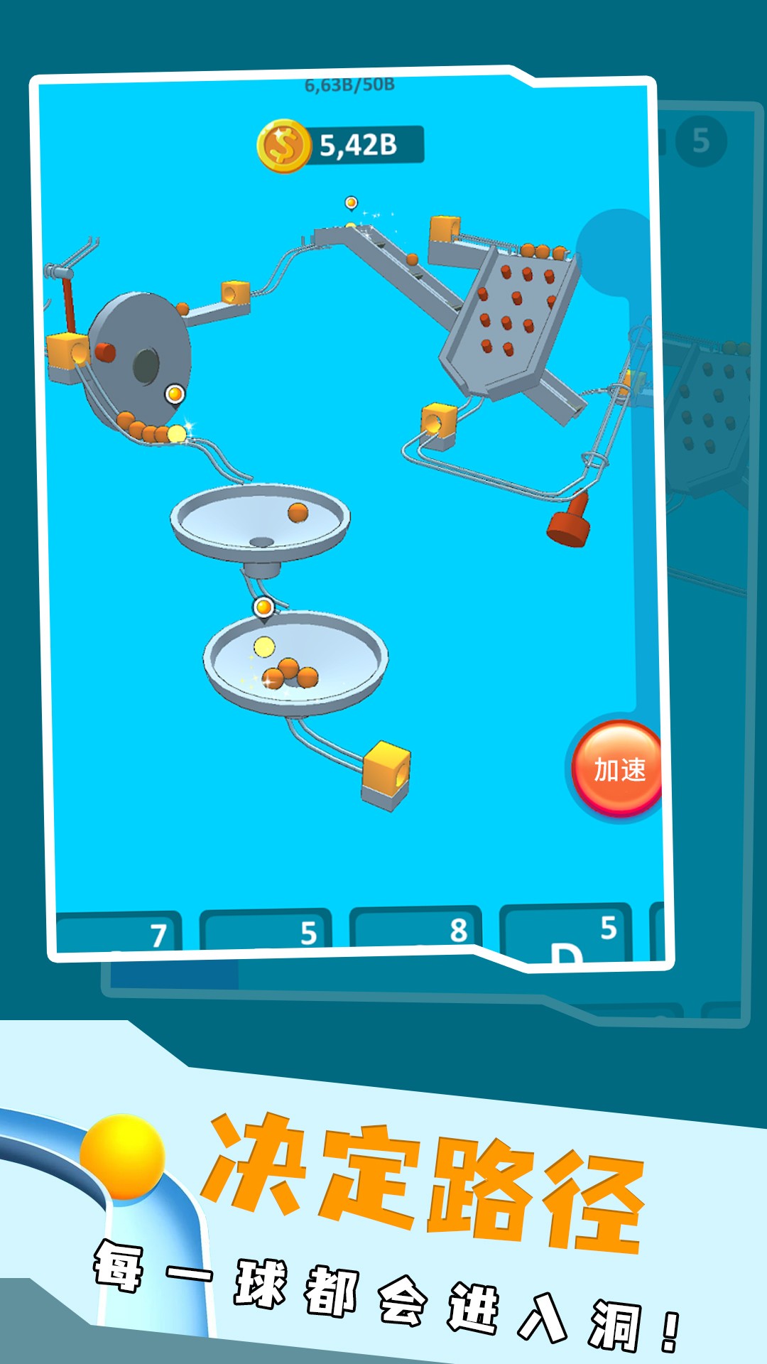 输送着每一个小弹珠让它们经过一个个赛道的同时抵达终点。