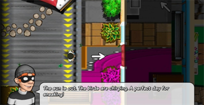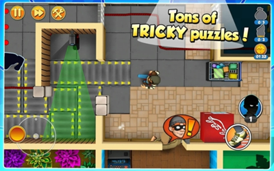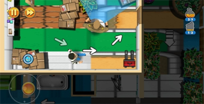 行窃的时候Bob需要小心翼翼的躲避屋主警卫员、通过寂静无声的行动来在墙角门后进行躲藏,甚至是像忍者一般,在木箱、花盆、地板裂缝或者是马桶里进行躲避,非常考验玩家的反应能力。