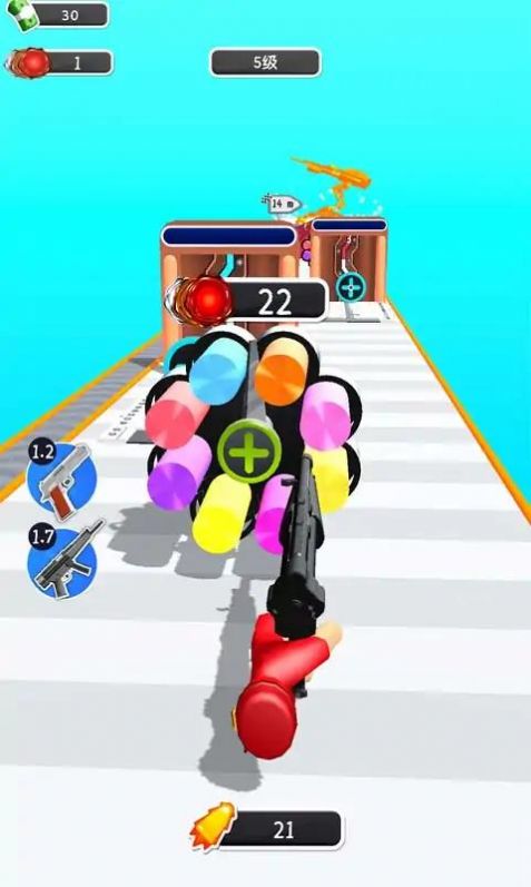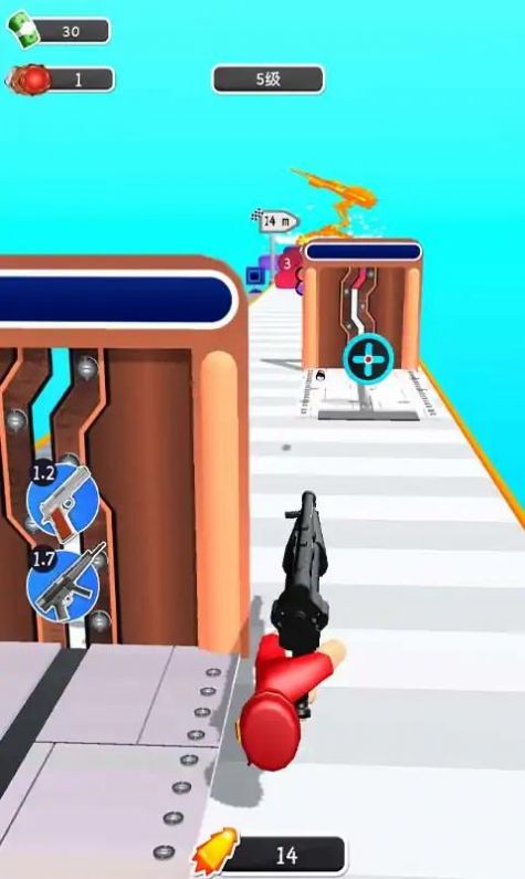 枪支运行建造这是一款设定还算有意思的跑酷冒险游戏,我们要在这里动用哦我们的武器,让它跟着我们一起跑酷,在这里玩到精彩有趣的枪战,我们在这里的动作能够非常灵活,可以让我们一路见到成功。