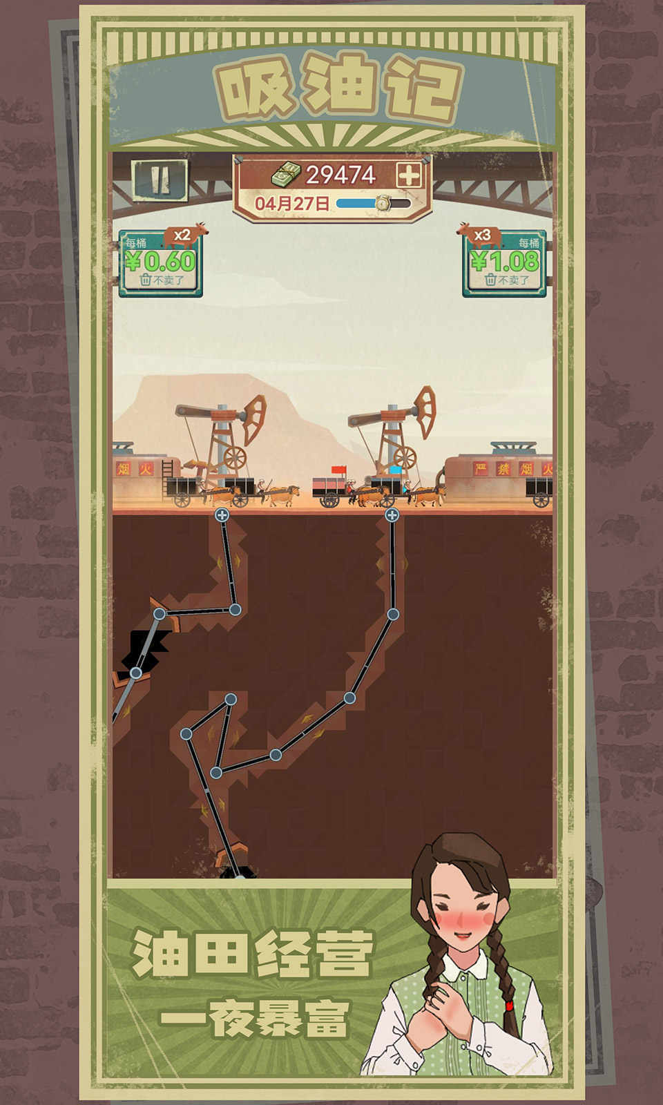 吸油记免广告内购版这是一款精彩有趣的经营模拟游戏,我们能在这里玩的尽兴,通过这里的油类产品,我们能够收获到金钱,用这些扩大我们的产业,更换我们的设备。我们可以利用油钱,就在这里玩的开心吧!