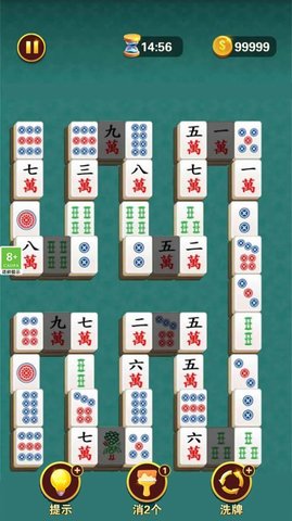 2、很多关卡在等着你,每一关都需要消除所有的麻将方块才能顺利过关。