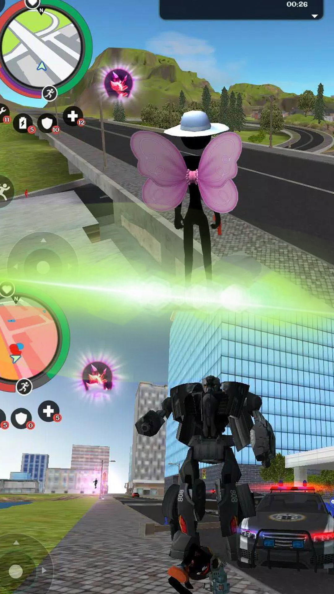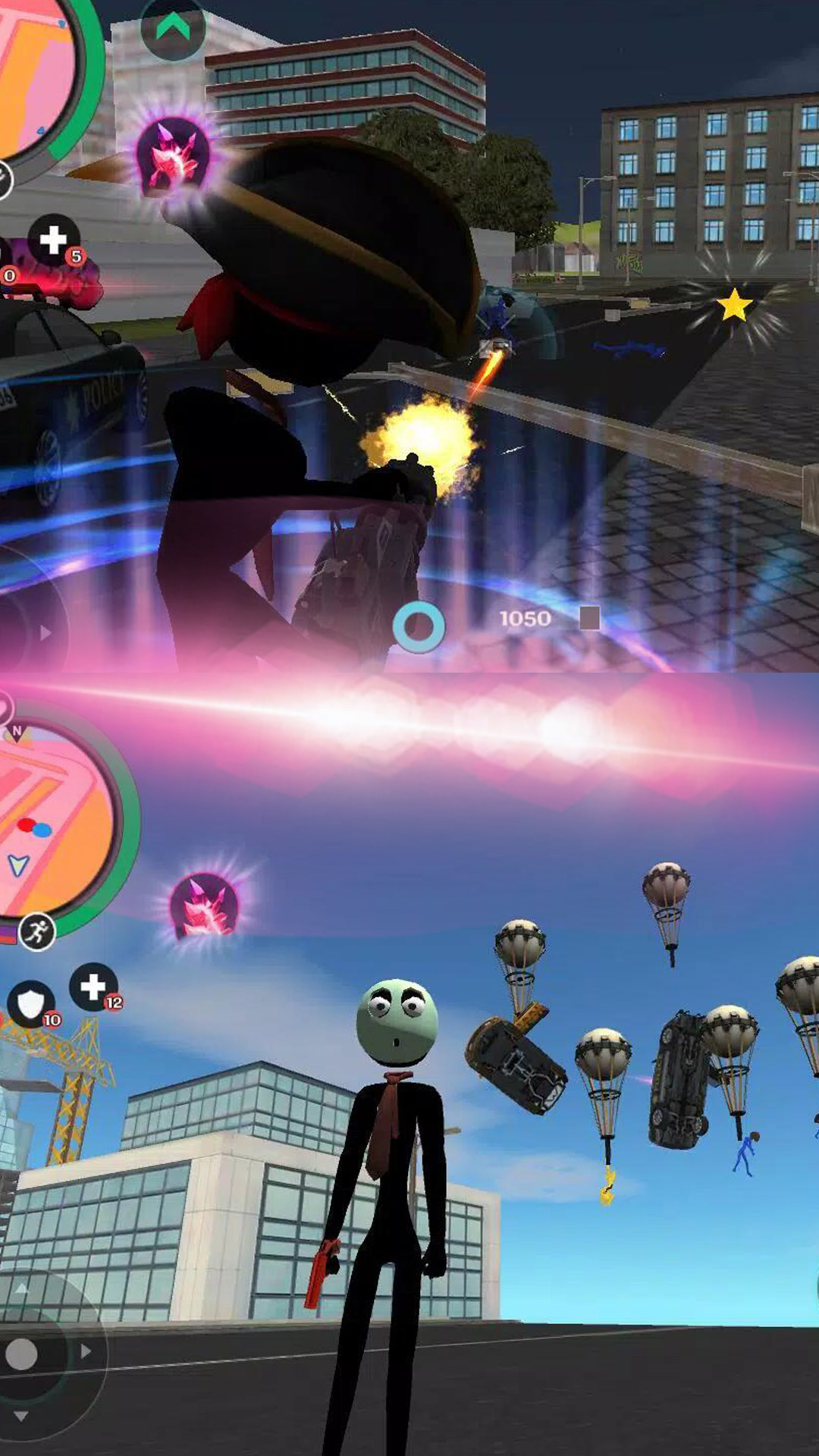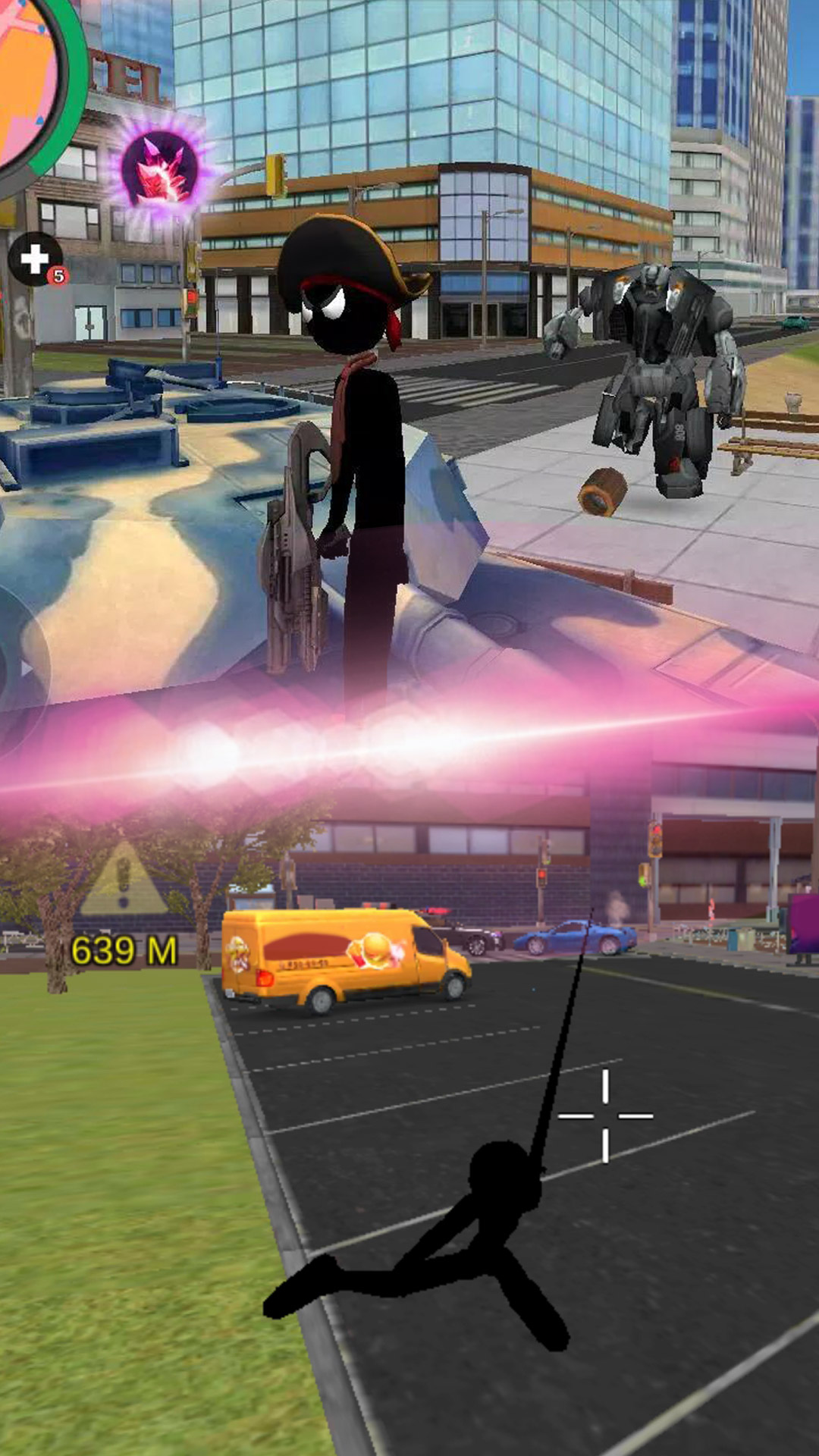 1、操控蜘蛛火柴人英雄,在城市中自由移动,接受并完成各种任务;