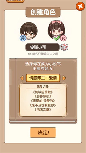 创作模式自由发挥: 提供多种创作模式,玩家可以根据自己的兴趣和创作灵感选择不同的写作方式,包括悬疑、奇幻、言情等,实现个性化创作。