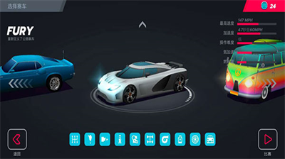 1、各种各样的赛车可以驾驶,游戏过程中有着丰富的趣味效果