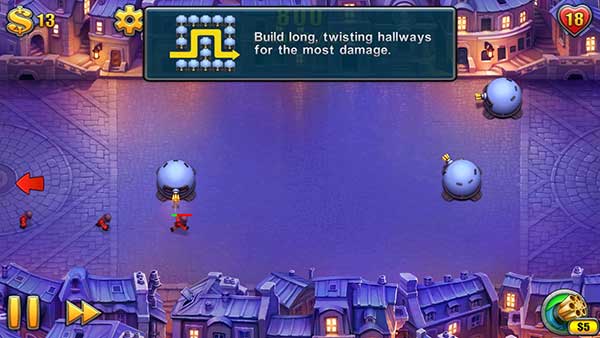 2、卡通的画面能够让我们尽情开炮,用炮塔构建好这里的防线。