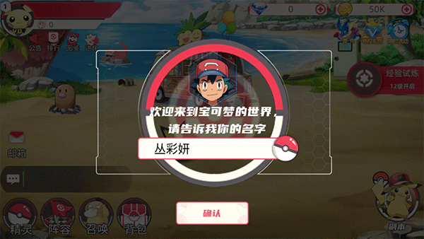 1、打开功夫喵星人宝可梦手游,先设置游戏昵称;