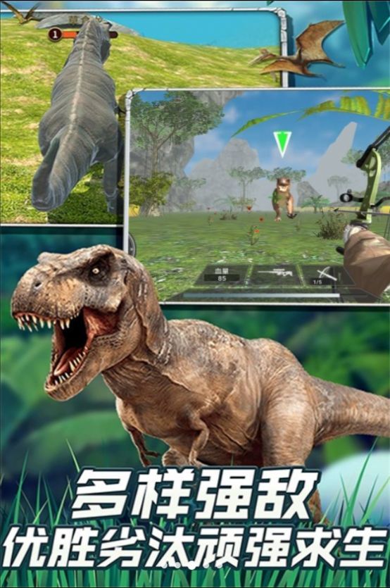 3、升级自己的武器和技能,抵御强大的恐龙生物,赢得游戏胜利。
