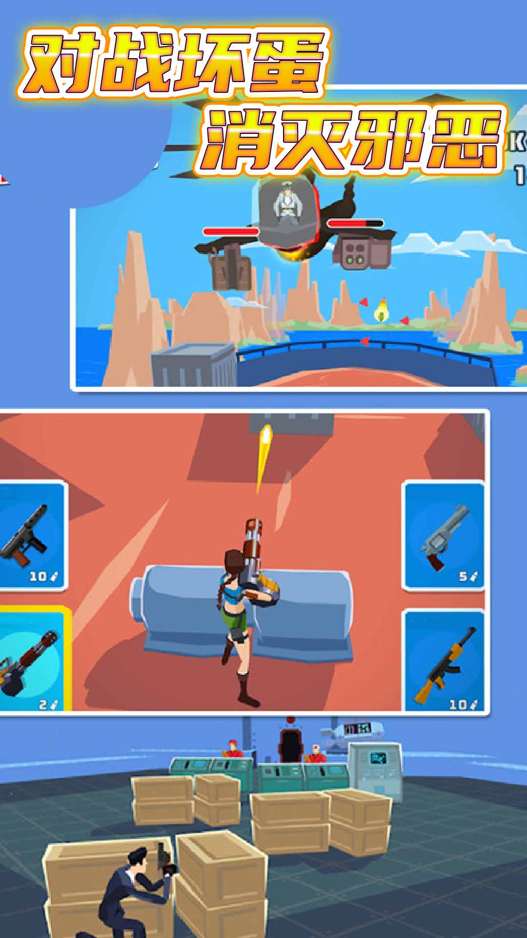 3、选择更多的关卡,瞄准敌人,击败对手。