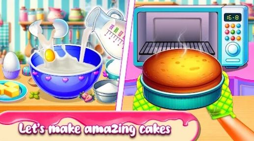 画面精美可爱,音效生动有趣,为玩家带来愉悦的游戏体验,进入游戏是可以制作各种不同的蛋糕,让玩家们沉浸其中