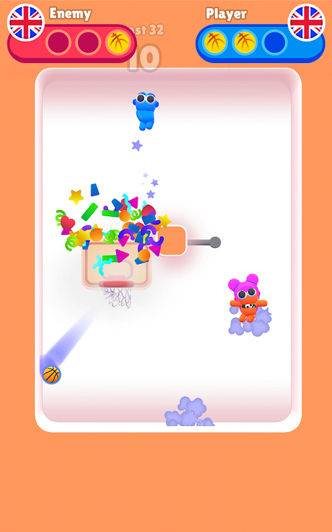 玩家可以与朋友们一起进行篮球投篮竞技,展开激烈的比赛