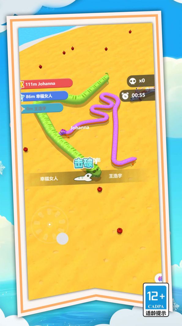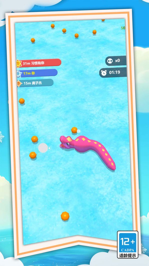 趣味休闲游戏,玩家将控制一条贪吃的蛇,在游戏地图上不断吞食食物,变得越来越长,要避免撞到其他玩家的蛇或游戏中的障碍物