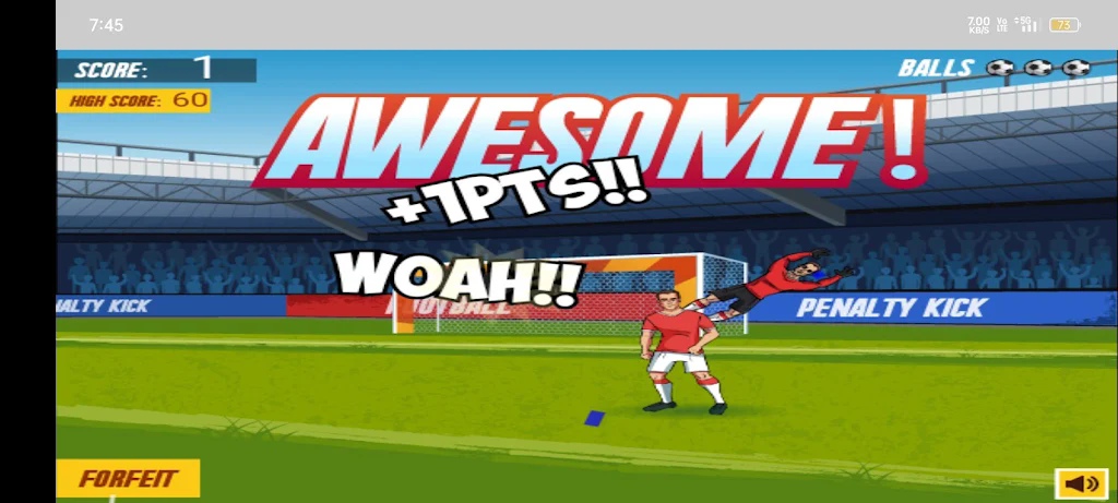 点球罚球挑战,各种足球运动是可以参与的,玩家可以解锁不同的成就,在规定的时间内进行发射足球的操作,成功射门即可获得分数,玩家要巧妙地避开守门员的防守,随意调整射门角度,避开障碍物,丰富足球场景等你参与