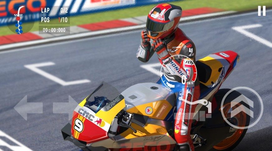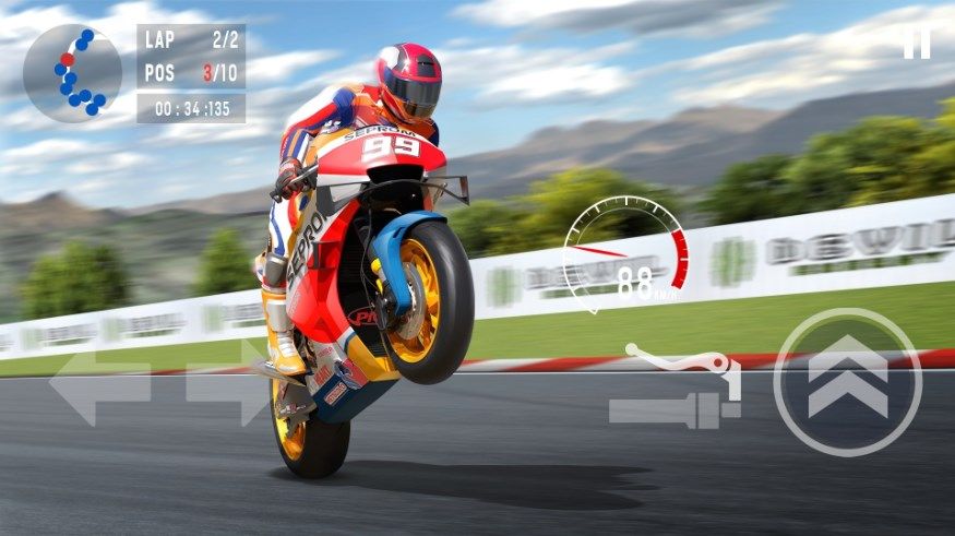 1、通过模拟真实的摩托车操控来完成比赛,如加速、刹车、转向等。