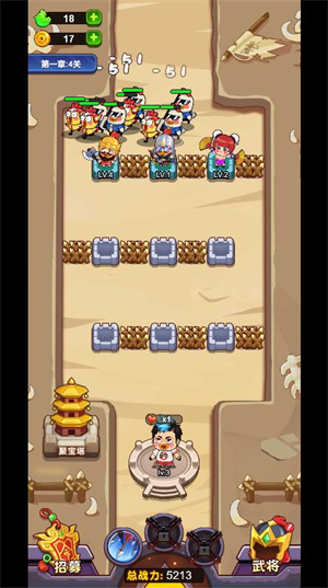 超能战鸡的放置塔防玩法是其核心玩法之一,非常考验玩家的策略和智慧。在游戏中,玩家需要根据场上的局势进行变通,合理安排武将的位置和攻击方式,以应对敌人的进攻。这种玩法不仅需要玩家具备出色的战略眼光,还需要有快速应对的能力。通过不断挑战和尝试,玩家可以逐渐提高自己的策略水平,成为真正的三国策略大师。