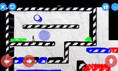《画出你的游戏遗产》最吸引人的特色便是其手绘玩法。玩家使用四种不同颜色(黑色、蓝色、绿色和红色)在纸上绘制游戏元素,然后通过“画你的游戏”应用程序拍照上传,将画作转化为游戏世界。黑色代表固定地板/地面,蓝色代表可推动的物体,绿色代表弹开角色的元素,红色则代表会破坏角色的障碍物。