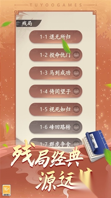 途游中国象棋最新版本,是一款以“象棋”为核心的棋牌益智休闲手游。它是在象棋巫师、博雅中国象棋、联众象棋、天天象棋、棋盘大全等多款游戏的基础上精心打造而成。该游戏拥有清爽的画面,遵循地道的中国象棋玩法规则,为玩家提供多种模式选择。在这里,玩家能体验公平对局,通过实时线上匹配展开棋牌厮杀,一决高下。玩家进入游戏后,会遇到不同难易程度的关卡,分别有傻瓜、新手、入门、菜鸟、业余、专业和大师级别,玩家可依据自身情况挑选挑战类型。
