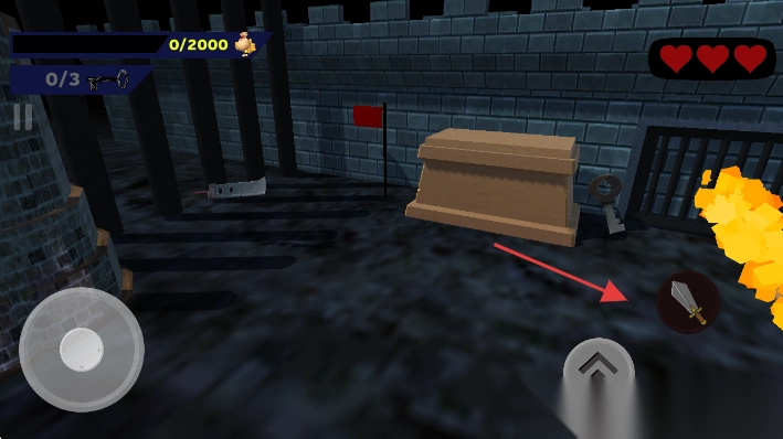 3、靠近武器、钥匙,点击右侧武器图标切换装备,收集物品。