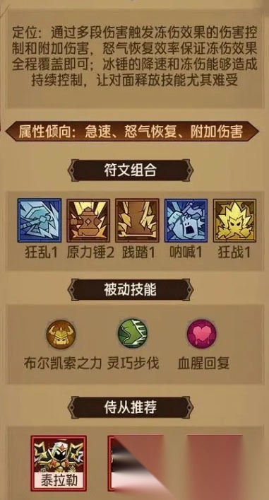 - 技能:赋予高额护盾,全力守护主角。此外,光环与被动技能带来高额免伤效果,与暴力输出型核心技能相匹配。