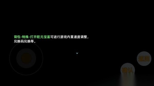 7.在背包的特殊选项中打开乾元宝鉴可以设置游戏速度以及兑换码兑换等。
