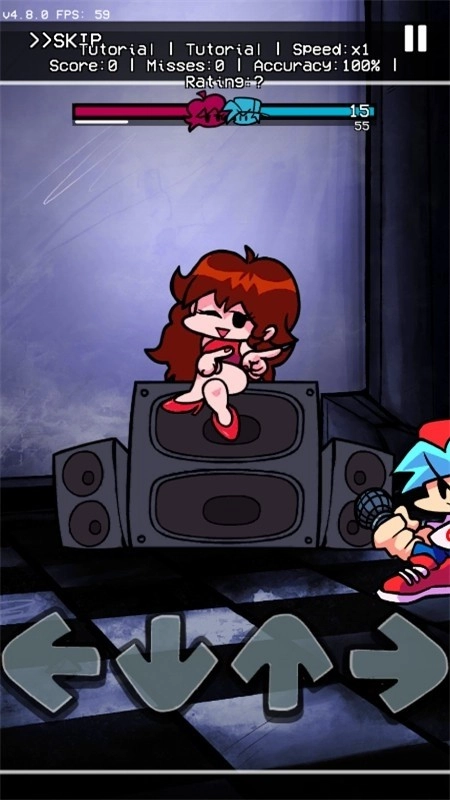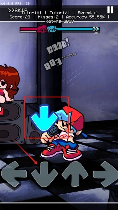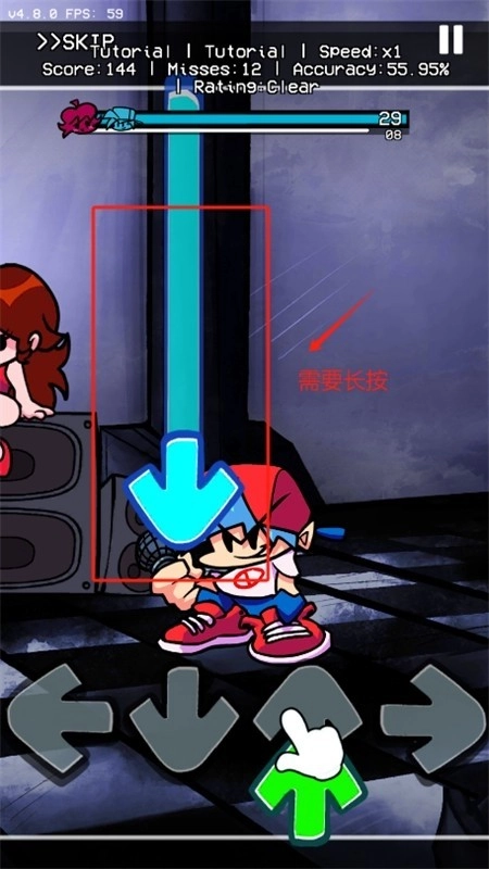 4、依照音乐节奏与教程指示,当音符下落时,点击对应箭头即可。