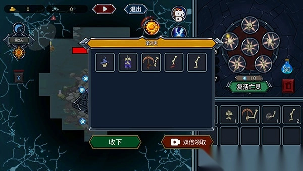 4、每一天塔楼里都会产生新的身体部位和亡灵们,可以点击“收下”自由组合,当你的亡灵抵达像地图上这样的建筑时,你将占领建筑,你占领的建筑每天早上也会产生法力、矿物、黄金或身体部位。