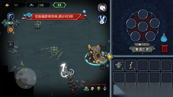 5、当亡灵遇到敌人,它会自动攻击,但它的攻击和生存能力取决于用来组成它的身体部件,你也可以点击右下角亡灵头像,利用方向按键控制他移动。