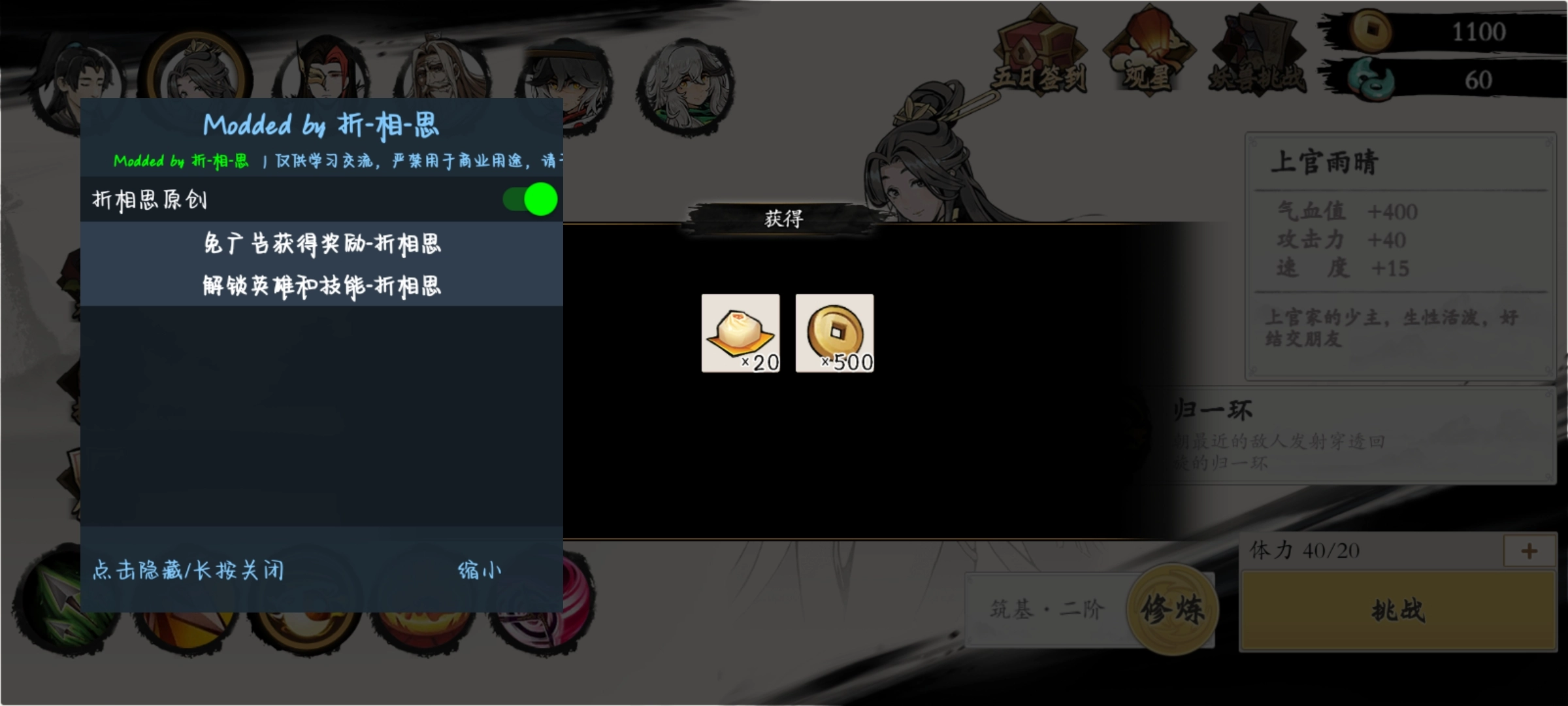 一念通天是一款以修仙为题材的动作游戏,该游戏已被修改。现在玩家只需启动它,就能更改相关内容,如此一来,玩家能更畅快地玩游戏,甚至无需观看广告,就能获取大量游戏资源奖励。