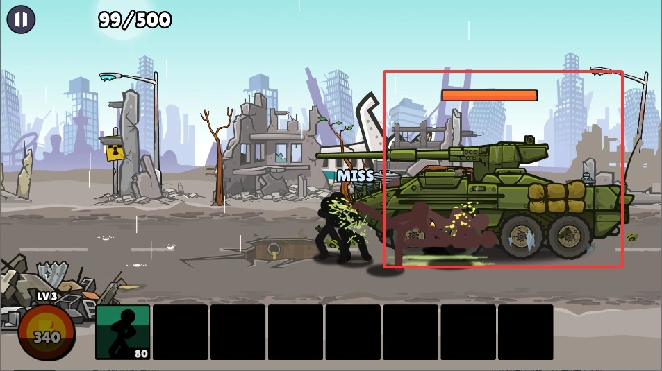 4、震撼的战场特效表现,机枪扫射、火焰喷射等攻击效果华丽炫目。火柴人风格的战斗动画流畅自然,充满打击感。