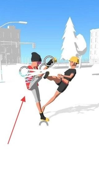 2. 遭遇对手时,启动踢击动作,并借助轮子道具强化攻击。