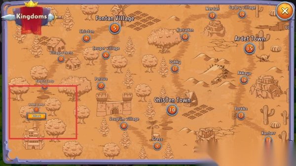 3、世界地图选红框【Altea】王国,派军队占领,拓展领地,获取资源点,增强王国实力。