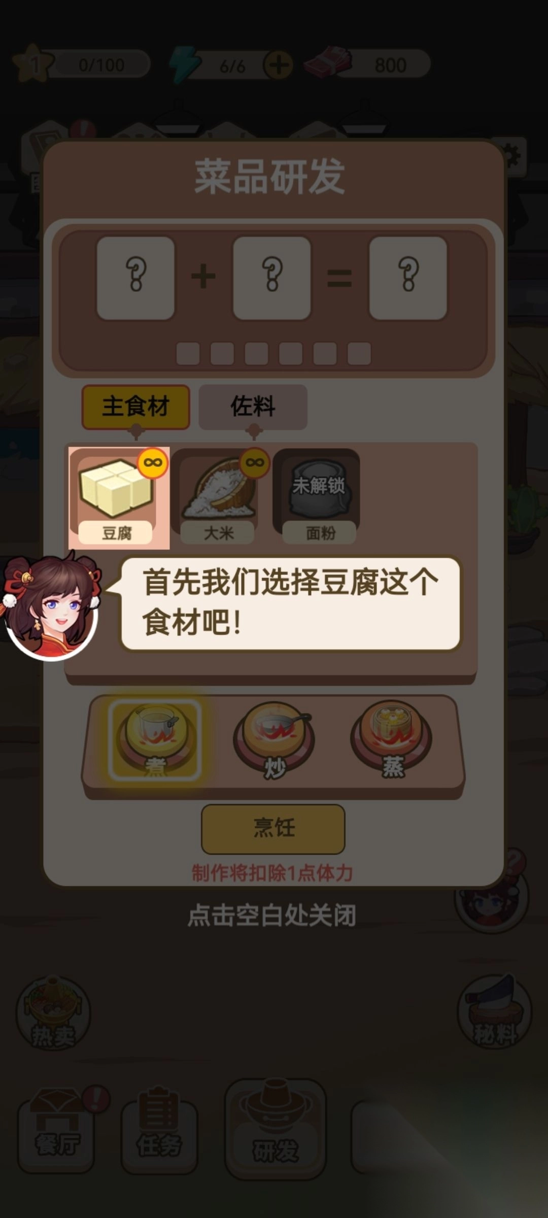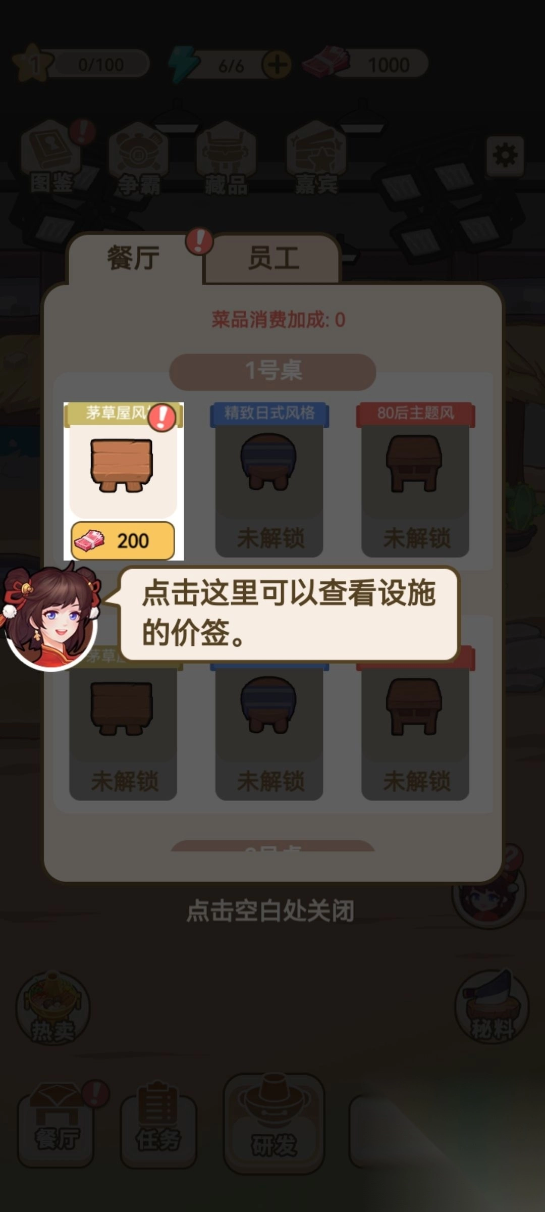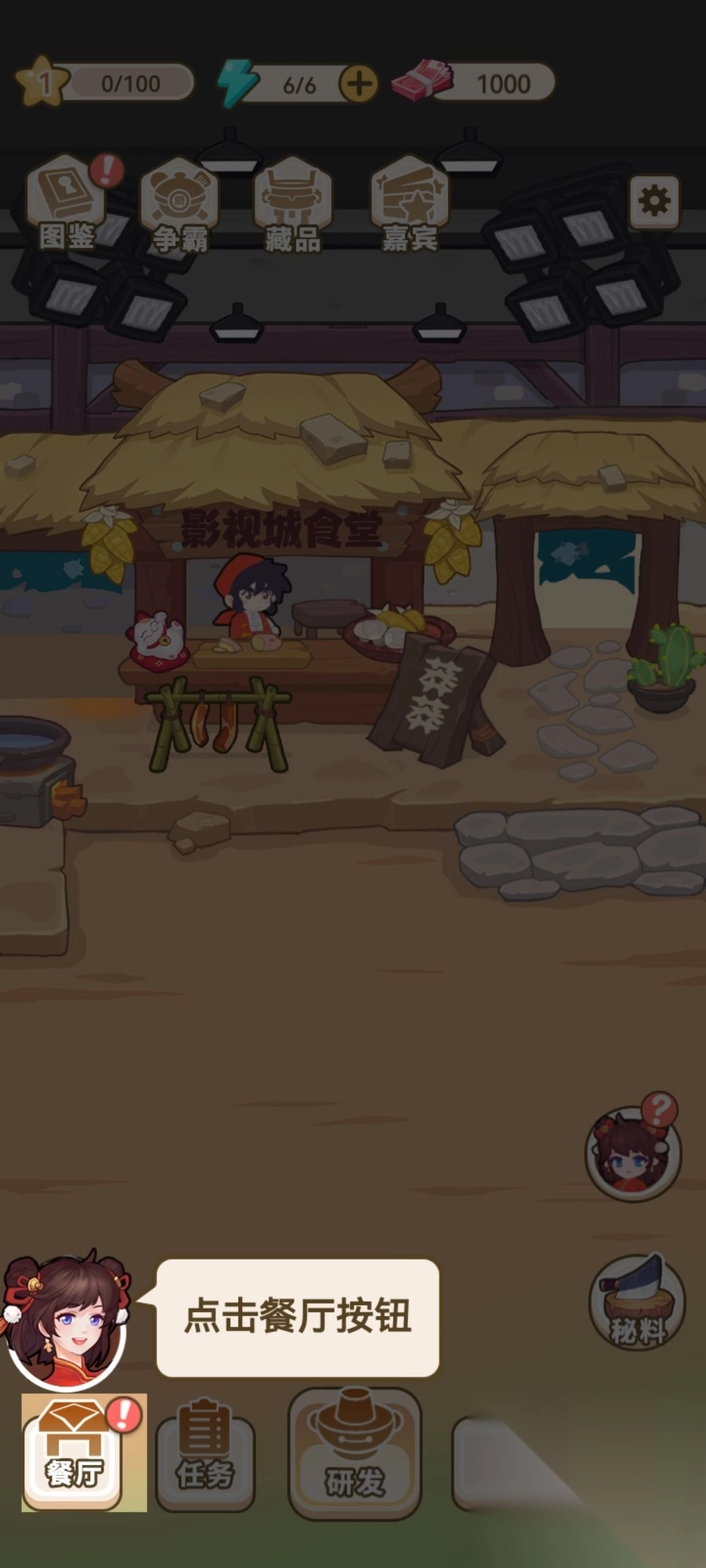 1、当进入游戏之后,最先要做的任务是打造餐厅规模,在主界面点击餐厅图标,即可进入建设模式。