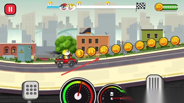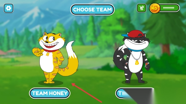 1、选“TEAM HONEY”(黄猫),进入城市赛道,用99999999金币,开始竞速。