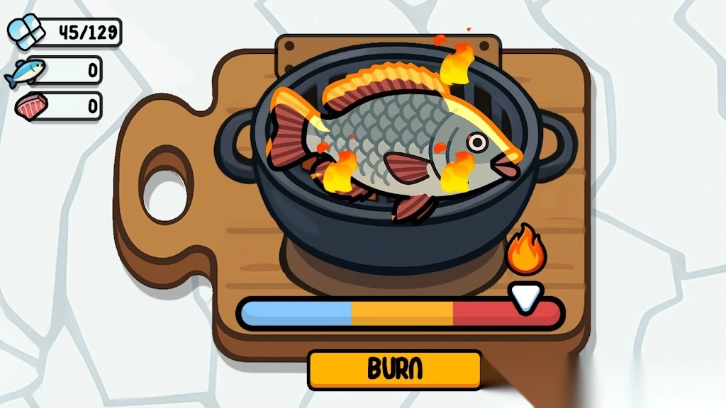 2. 把处理妥当的鱼送至厨房,依据客人订单要求烹制不同菜肴。随着餐厅的升级,能够解锁更多的菜谱与厨具。