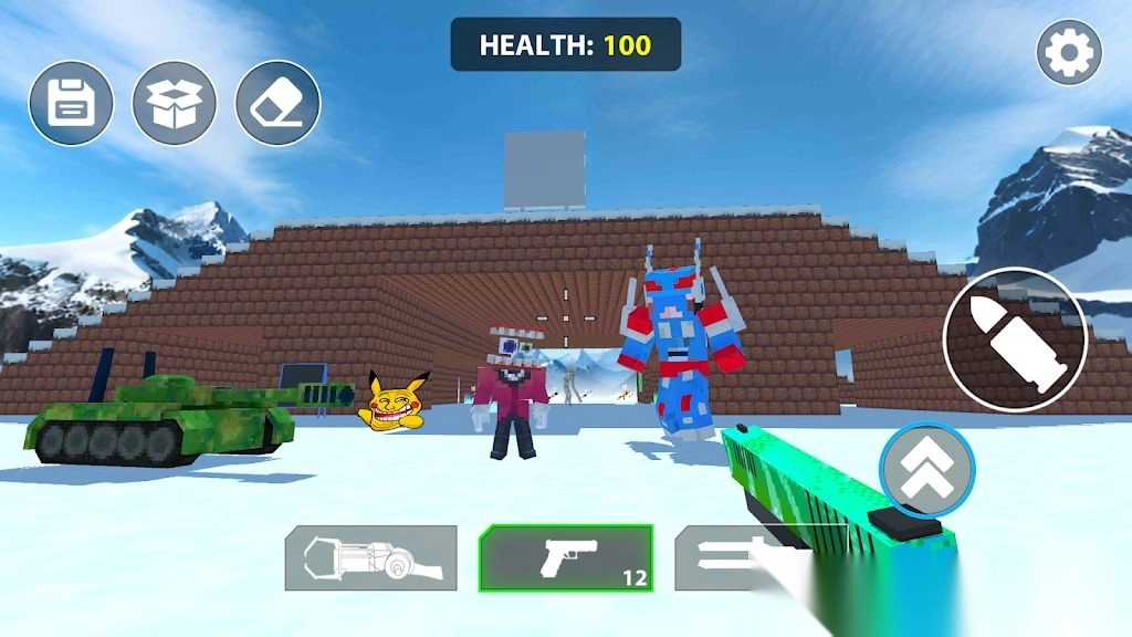 3. 游戏地图运用沙盒设计理念,显著提升了场景与角色的立体感,使得玩家能够置身于满是方块感的世界,尽情体验紧张刺激的射击战斗。