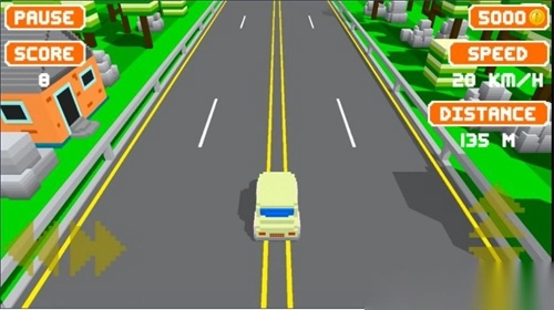 2、驾驶像素车在公路行驶,左右移动避其他车辆,注意车流变化,保持安全行驶不碰撞。