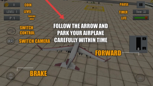 1、进入游戏后,需要仔细看系统操作指示,通过FORWARD、BRAKE按键操控飞机,在限时内谨慎完成停靠操作。