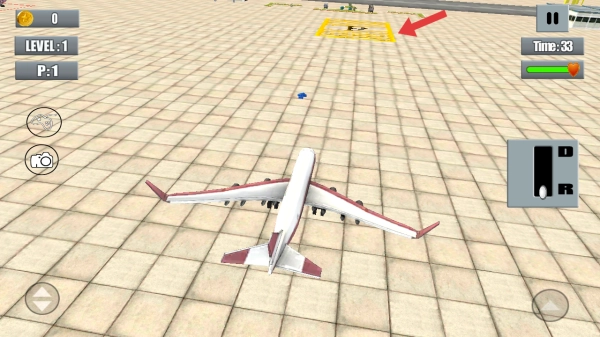 3、需要操控飞机驶向画面上方黄色发光的区域,精准停入PARKING AREA,达成关卡目标。