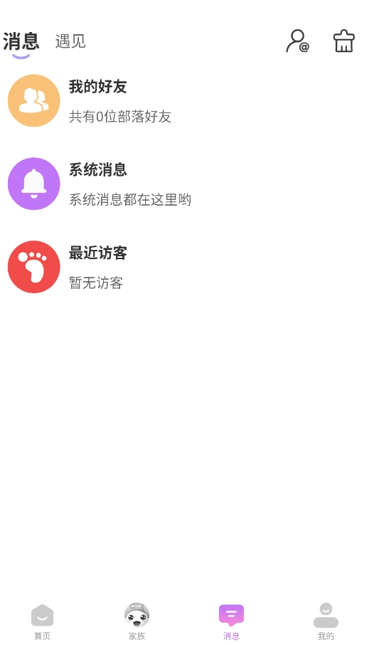 3、通过"消息中心"管理所有聊天记录,支持按家族、好友分类查看历史消息。
