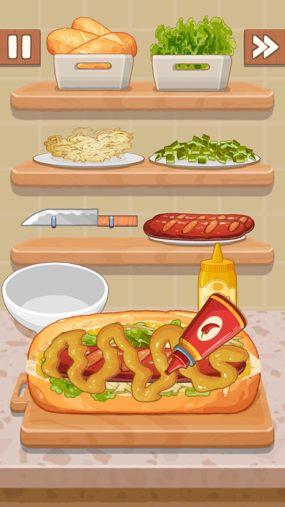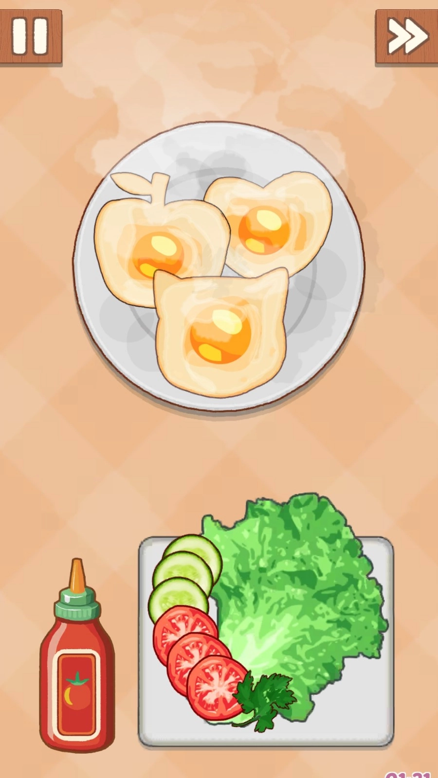 1.游戏节奏明快,操作简单,搭配轻快的背景音乐和Q萌角色,能有效缓解压力,在烹饪中获取好心情;