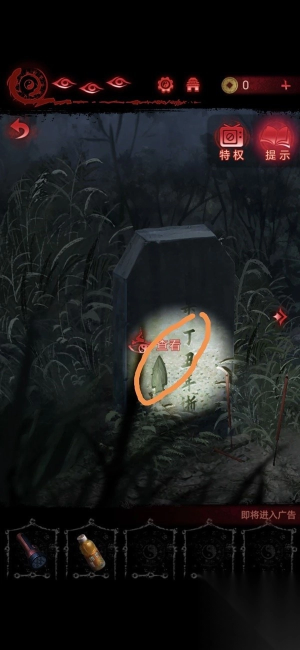 2、坟场石碑解密:用手电照亮左侧石碑,记录符号与天干(如丁丑年+矛头、丙子年+花朵);观察石桌机关,按“矛头→丁丑、花朵→丙子”摆放石块。