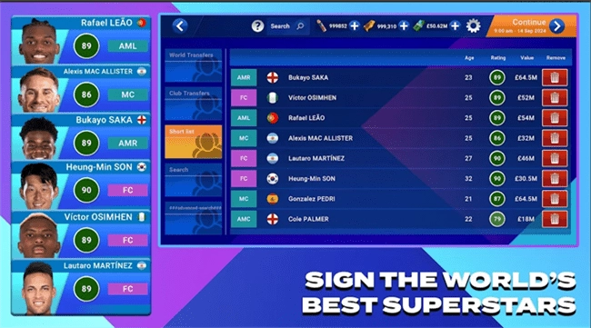 2. 来自世界各地的著名足球运动员将出现在这里,玩家可以自由选择收集和招募他们。