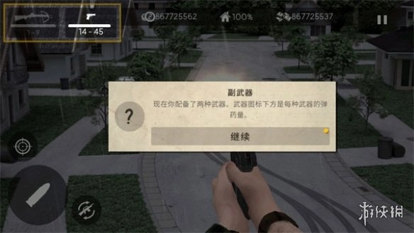 6、目前已配备双武器系统,界面下方会展示各武器的剩余弹药数量,按下“武器切换”键能够立刻更换手持武器。