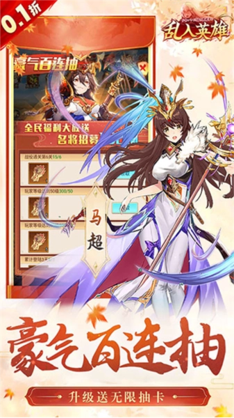 全民参与闯关活动即可领取无限抽机会,每天都有保底连抽福利,十连抽必定能获得橙将、红将或金将,爆率直接拉满!